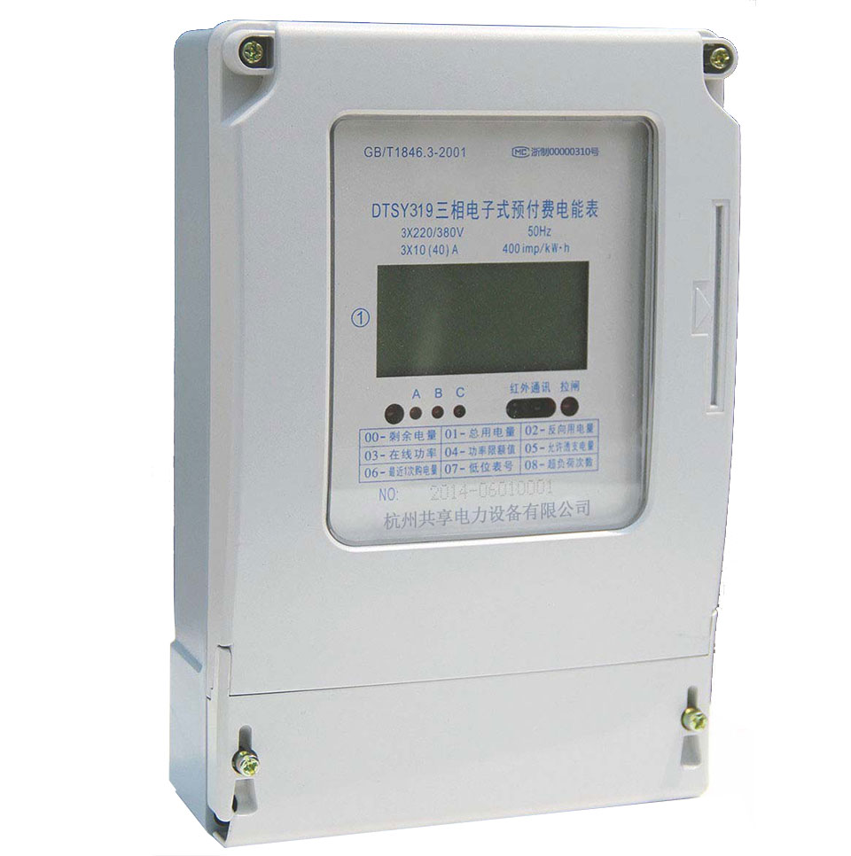 DTSY 系列三相全电子式预付费电能表系我公司采用进口专用大规模集成电路,16 位 A/D 转换、数字乘法器、应用数字采样处理技术并由先进的单片机处理系统进行数据的采集、处理和保存及应用 SMT 工艺制造的新型仪表。适用于计量额定频率为 50Hz 或 60Hz 的三相三线或三相四线交流电网中有功电能的消耗。产品符合 GB/T17215.321-2008《1 级和 2 级静止式交流有功电能表》和 GB/T 18460.3-2001 《IC 卡预付费售电系统第 3 部分:预付费电能表》的全部技术要求。