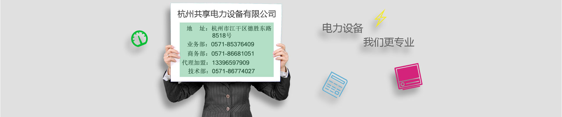 您所在的位置:联系我们 杭州共享电力设备有限公司 地址:杭州市江干区德胜东路8518号 业务部:0571-85376409 商务部:0571-86681051 商务部传真:0571-86627830 代理加盟号码:13396597909 技术部:0571-86774027 邮编:310000